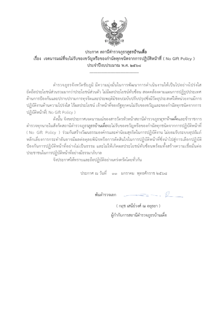 (No Gift Policy) ตำรวจภูธรบ้านเดื่อ
